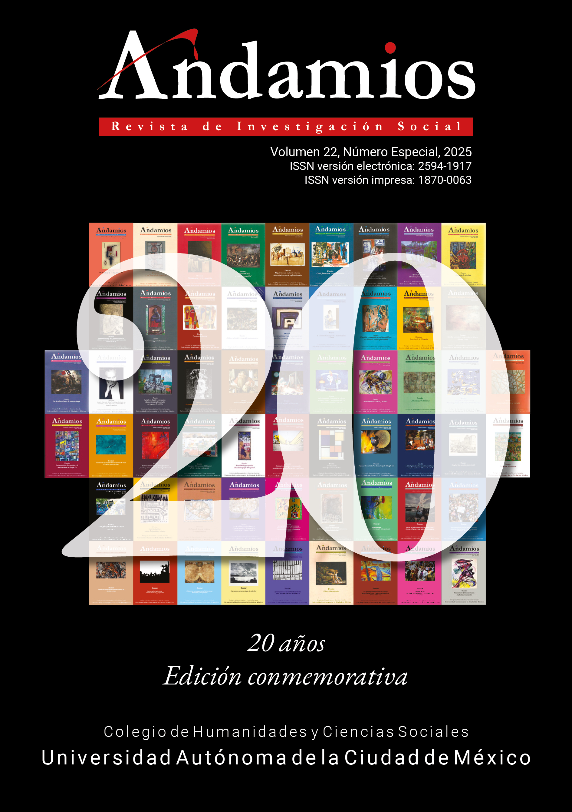 Esta revista está bajo una licencia Creative Commons México 2.5. Está permitida la reproducción y difusión de los contenidos de la revista para fines educativos o de investigación, sin ánimo de lucro, siempre y cuando éstos no se mutilen, y se cite la procedencia (Andamios, Revista de Investigación Social) y al autor. Los derechos patrimoniales de los artículos publicados en Andamios, Revista de Investigación Social son cedidos por el(los) autor(es) a la Universidad Autónoma de la Ciudad de México una vez que los originales han sido aceptados para que se publiquen y distribuyan tanto en la versión impresa como electrónica de la revista. Sin embargo, tal y como lo establece la ley, el(los) autor(es) conserva(n) sus derechos morales. El(los) autor(es) recibirá(n) una forma de cesión de derechos patrimoniales que deberá(n) firmar una vez que su original haya sido aceptado. En el caso de trabajos colectivos bastará la firma de uno de los autores, en el entendido de que éste ha obtenido el consentimiento de los demás. Los autores podrán usar el material de su artículo en otros trabajos o libros publicados por ellos mismos, con la condición de citar a Andamios como la fuente original de los textos.